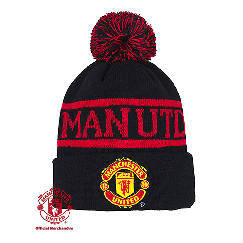 Шапка вязаная Manchester United с помпоном черная